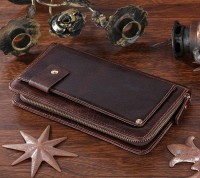 Мужской кожаный тёмно-коричневый клатч GRANDE PELLE 11263