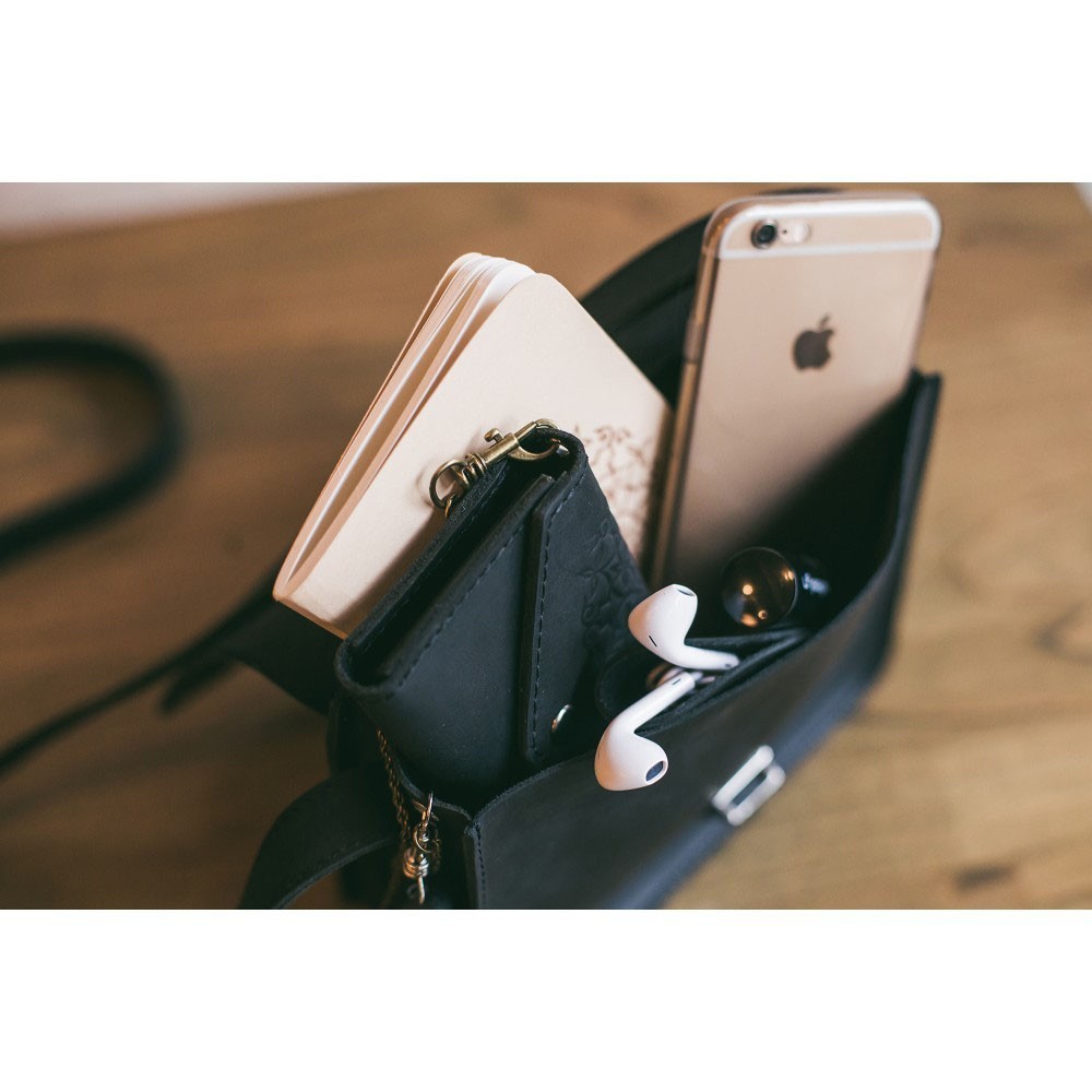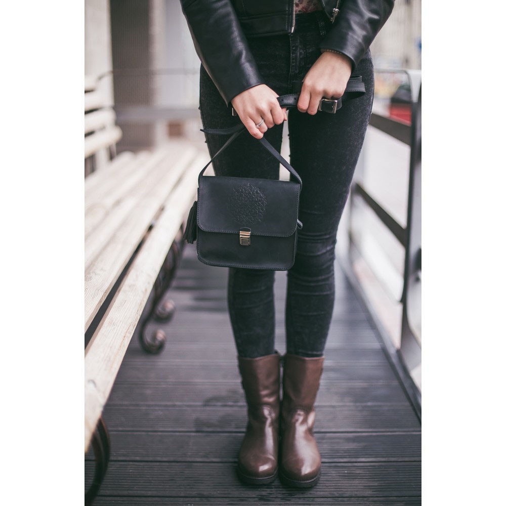 Отделы: 2 отделения и карман для карточек, ремешок регулируем. В конструкции изделия предусмотрено кольцо-люверс, к нему можно крепить кошелек либо ключи с помощью цепочки