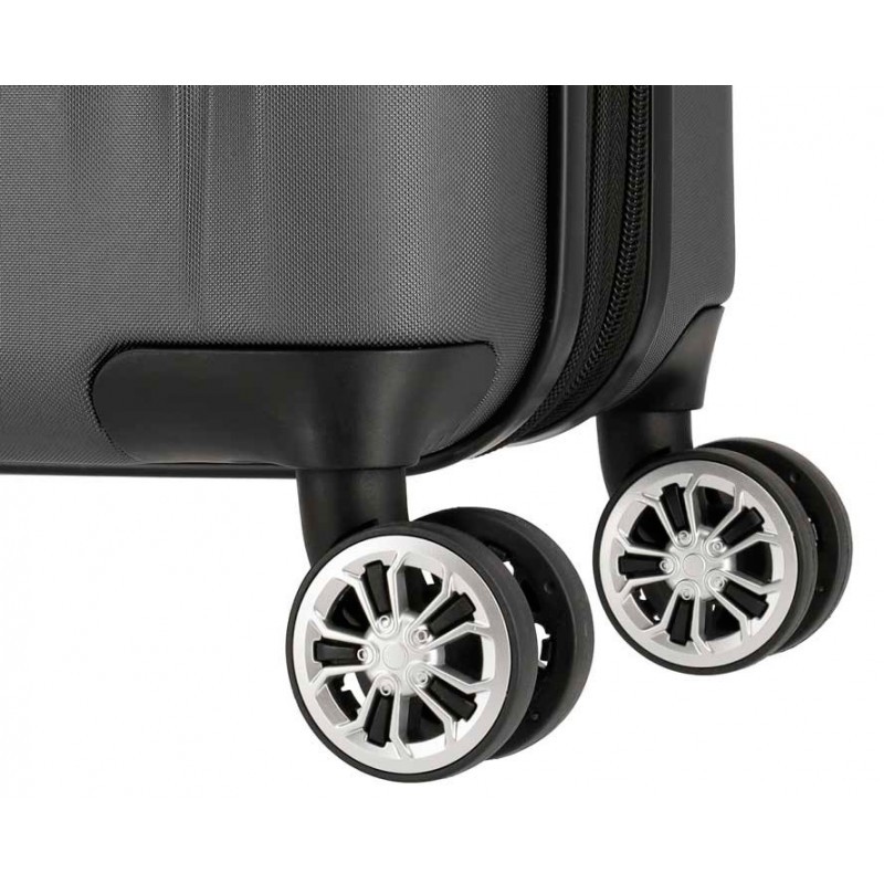 Система из 4-х удвоенных колес, они гладкие и ходовые. Они обладают максимальной подвижностью и послушанием. Эргономичная телескопическая ручка с регулируемой высотой. Две крепкие ручки для переноса в горизонтальном, либо вертикальном положениях.