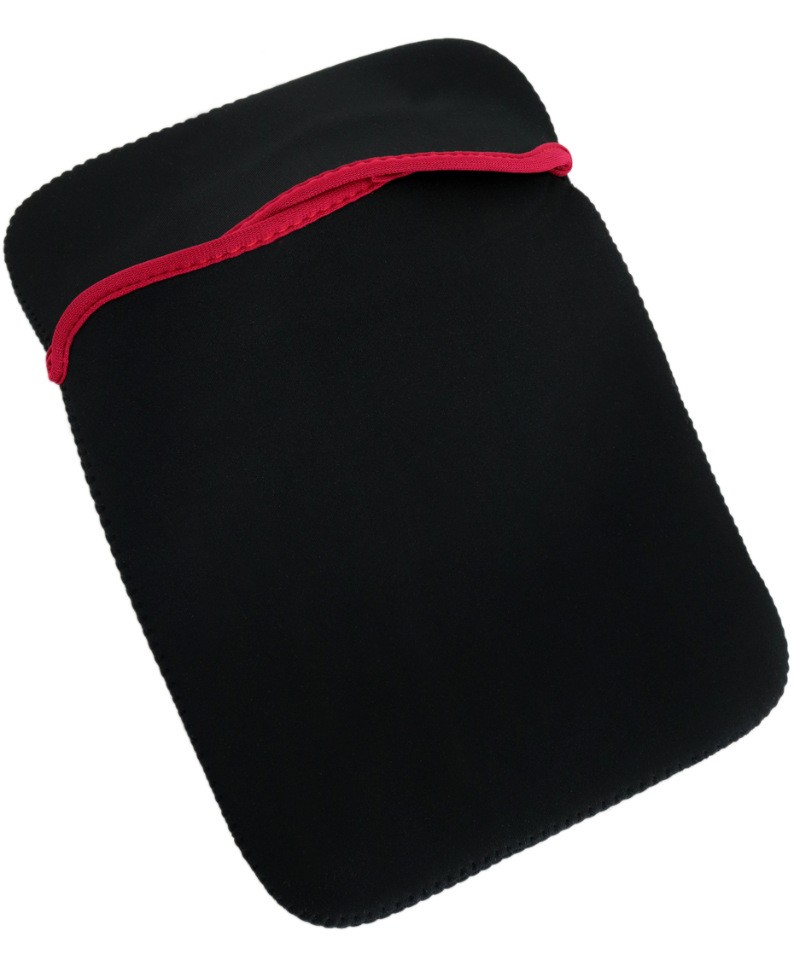 Чехол для планшета 12 дюймов выполнен из плотного неопрена, черного цвета с красной подкладкой; закрывается клапаном.
