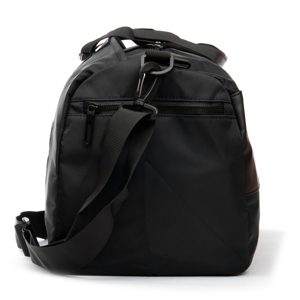 Количество отделов: 1 отделение, закрывается на молнию. Внутри отделения есть карман на молнии и двойной открытый карман. На обратной стороне расположен большой карман на молнии с герметичной подкладкой. На торцах сумки находятся карман для обуви и карман на молнии для вещей.
