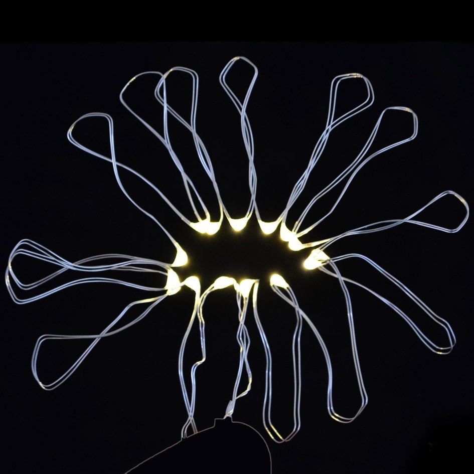 Гирлянда — нить — 15 светодиодных ламп, расстояние между лампочками 10 см, расстояние между первой лампой и отсеком для батареек 10 см
