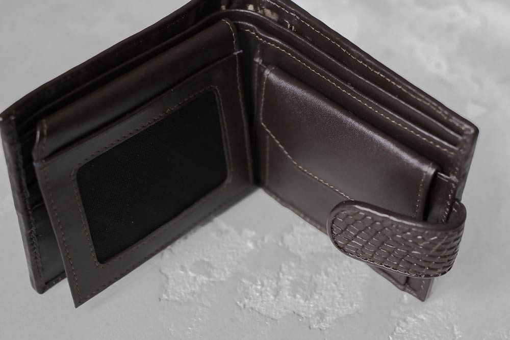 Количество отделов: 2 отделения для бумажных денег; 3 отделения для визиток; монетница; 1 прозрачное окошко; 1 потайной карман