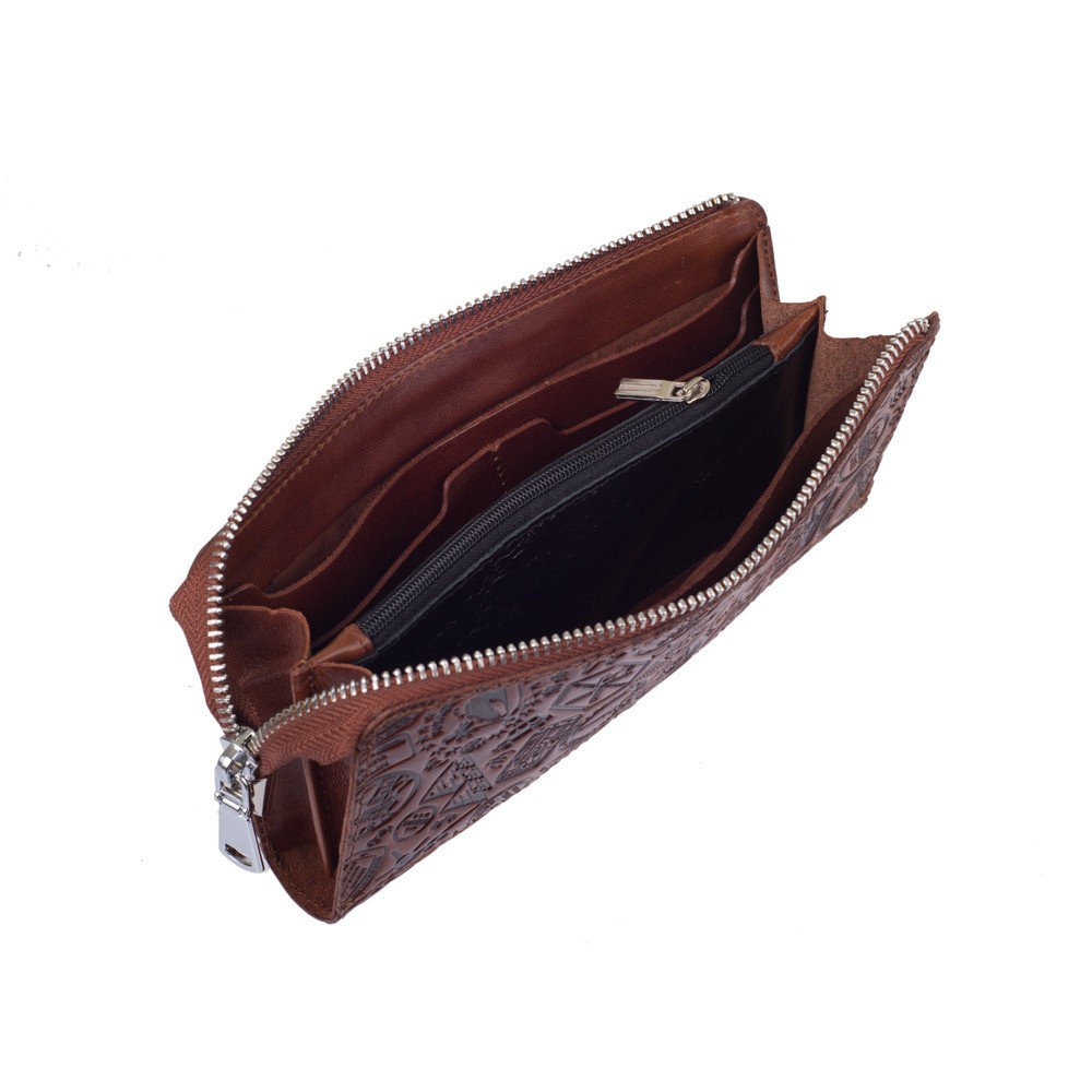 Эргономичный и стильный кошелек ручной работы из натуральной кожи на кнопках с художественным тиснением от HiArt , со всеми необходимыми отделами для купюр и мелочи. Будет отличным дополнением образа.