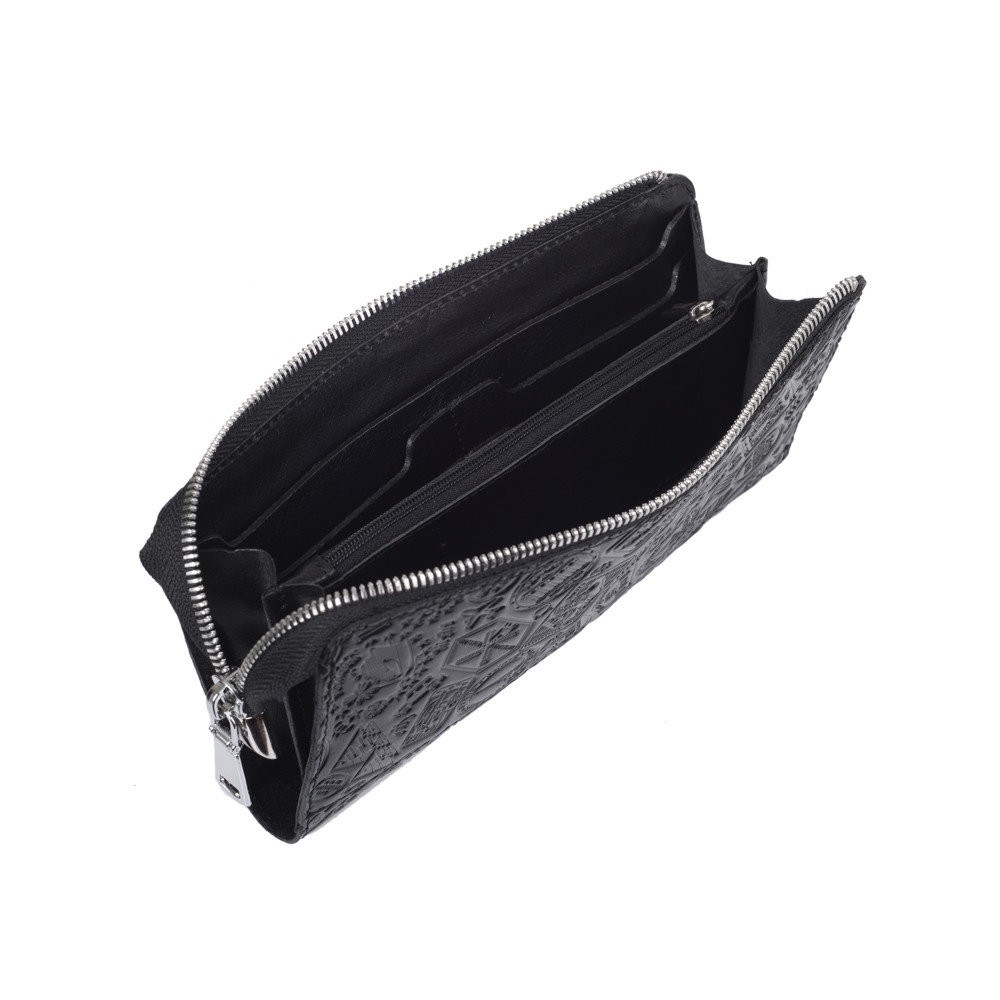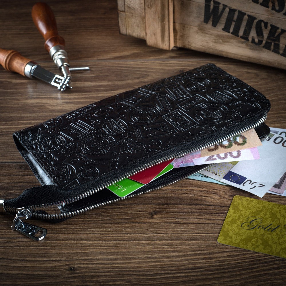 Эргономичный и стильный кошелек ручной работы из натуральной кожи на кнопках с художественным тиснением от HiArt , со всеми необходимыми отделами для купюр и мелочи. Будет отличным дополнением образа.
