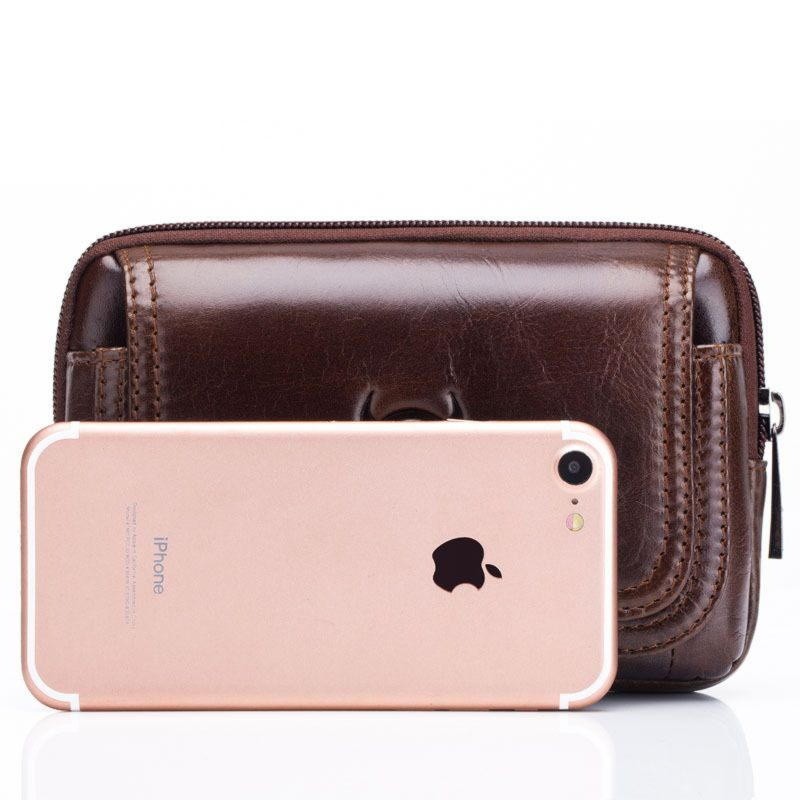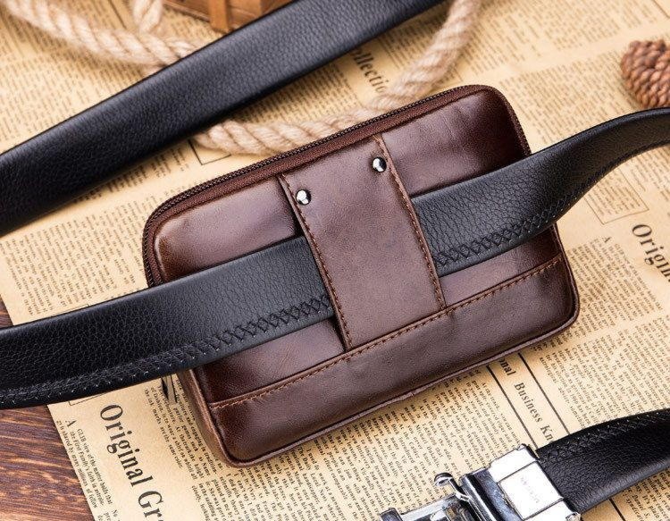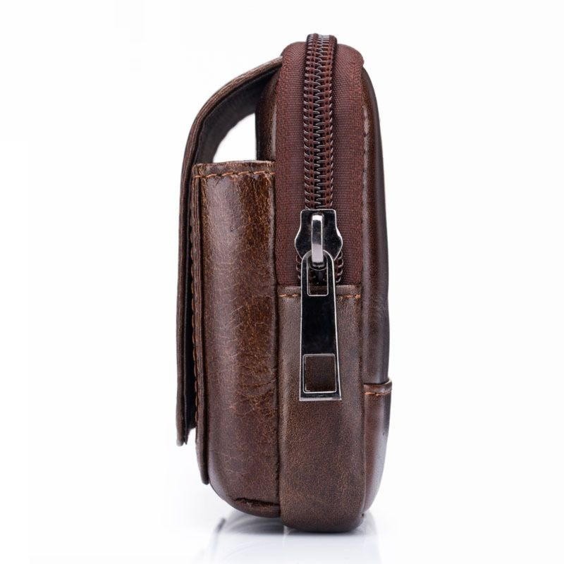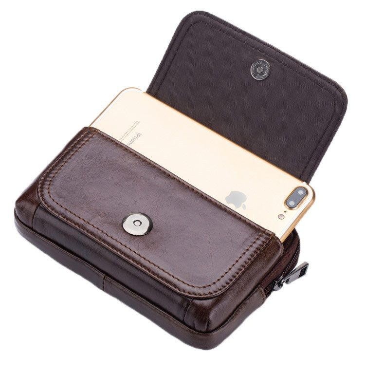 Напоясная сумка для смартфона и документов из натуральной кожи, для мужчин. Изделие выполнено из качественных материалов, одевается на ремень джинсов или брюк. Сумочка вмещает в себя большой смартфон, документы и деньги.