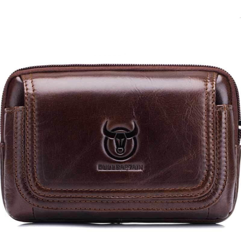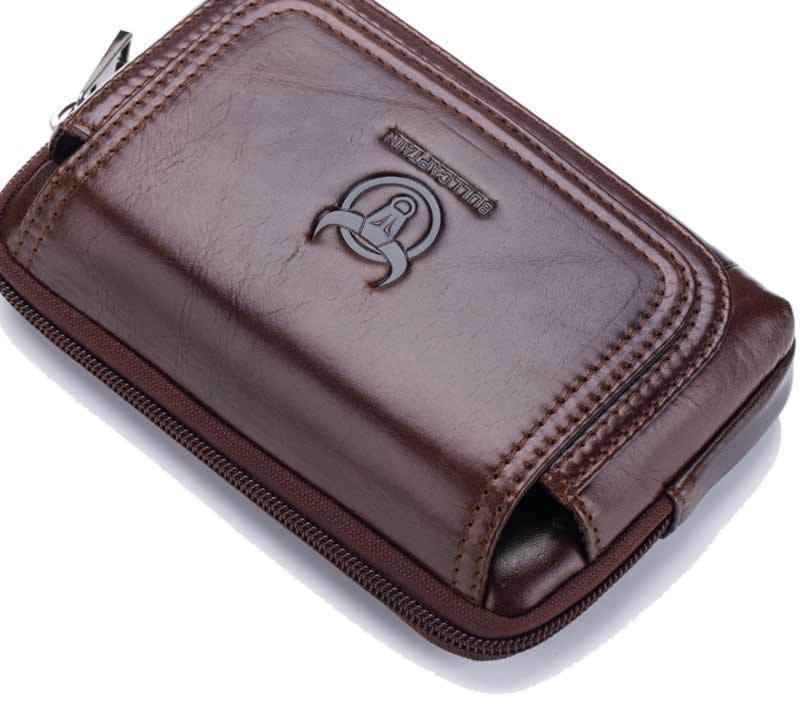Кожаная коричневая сумка на пояс BULL t1347