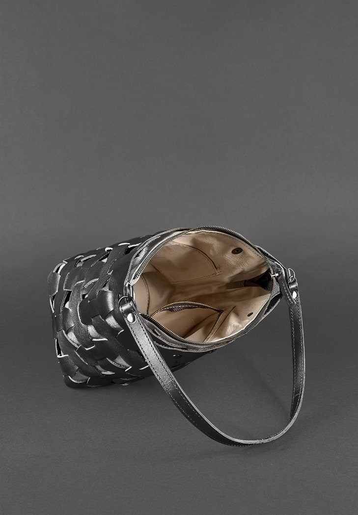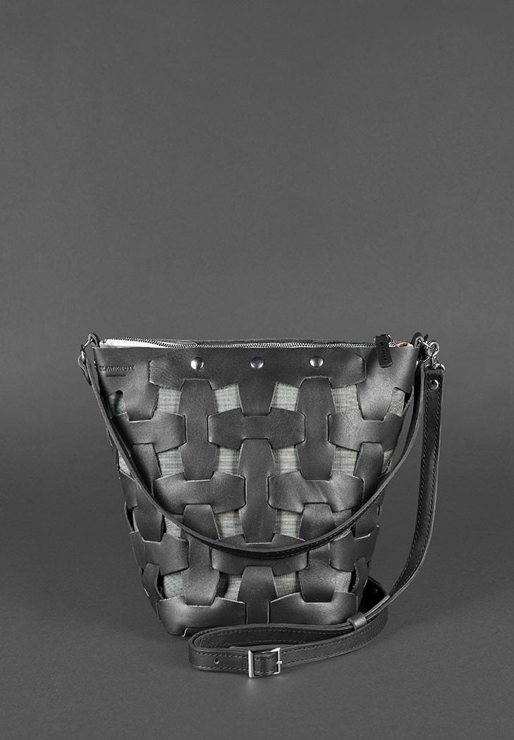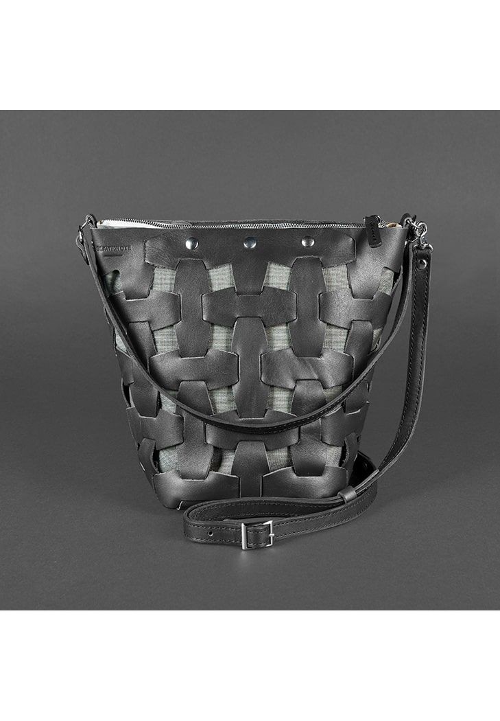 Кожаная плетеная женская сумка BlankNote Пазл черная Krast BN-BAG-32-G