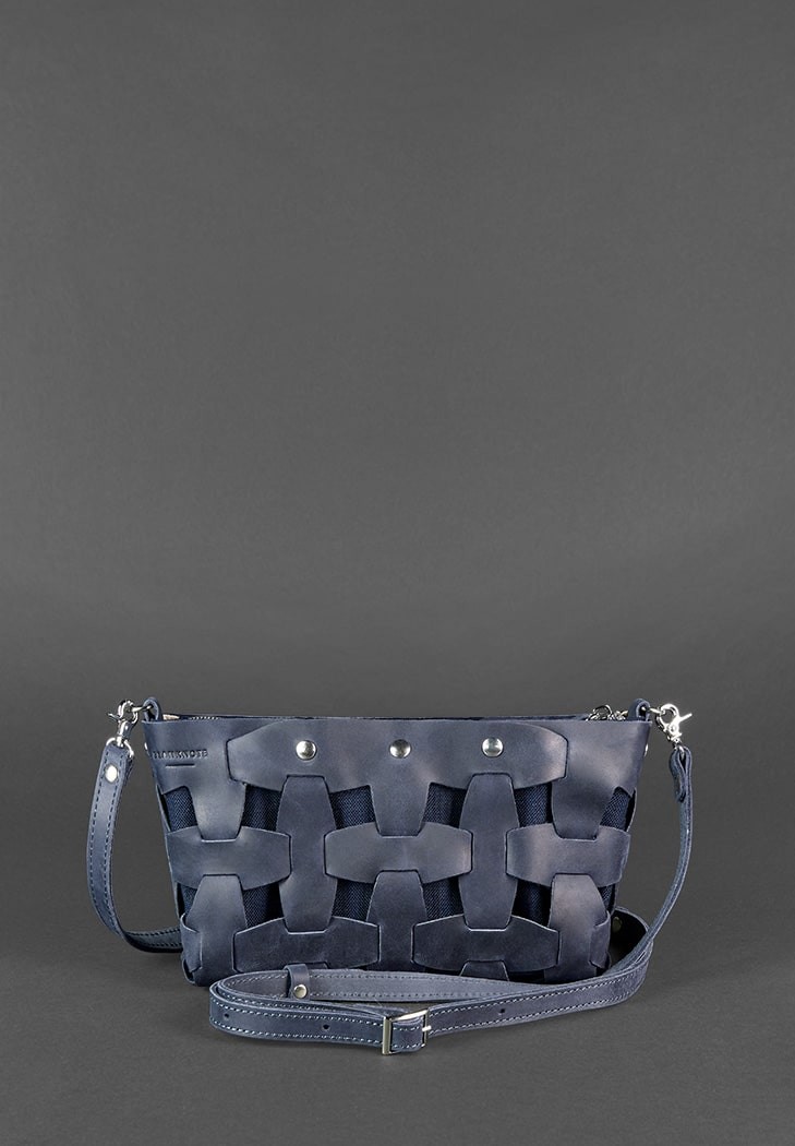 Кожаная плетеная женская сумка BlankNote Пазл S синяя Crazy Horse BN-BAG-31-NN