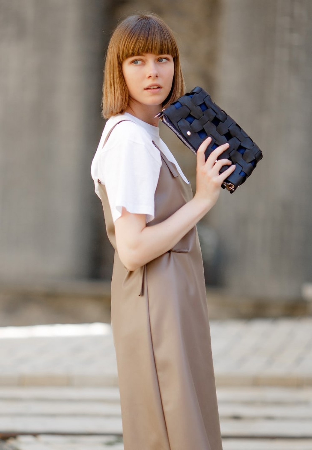 Кожаный плечевой ремень легко снимается.