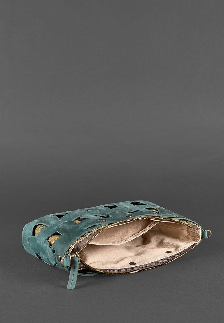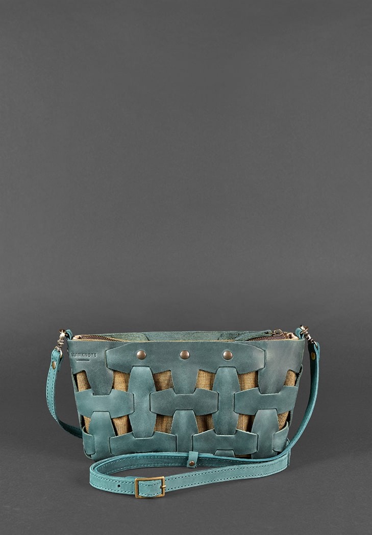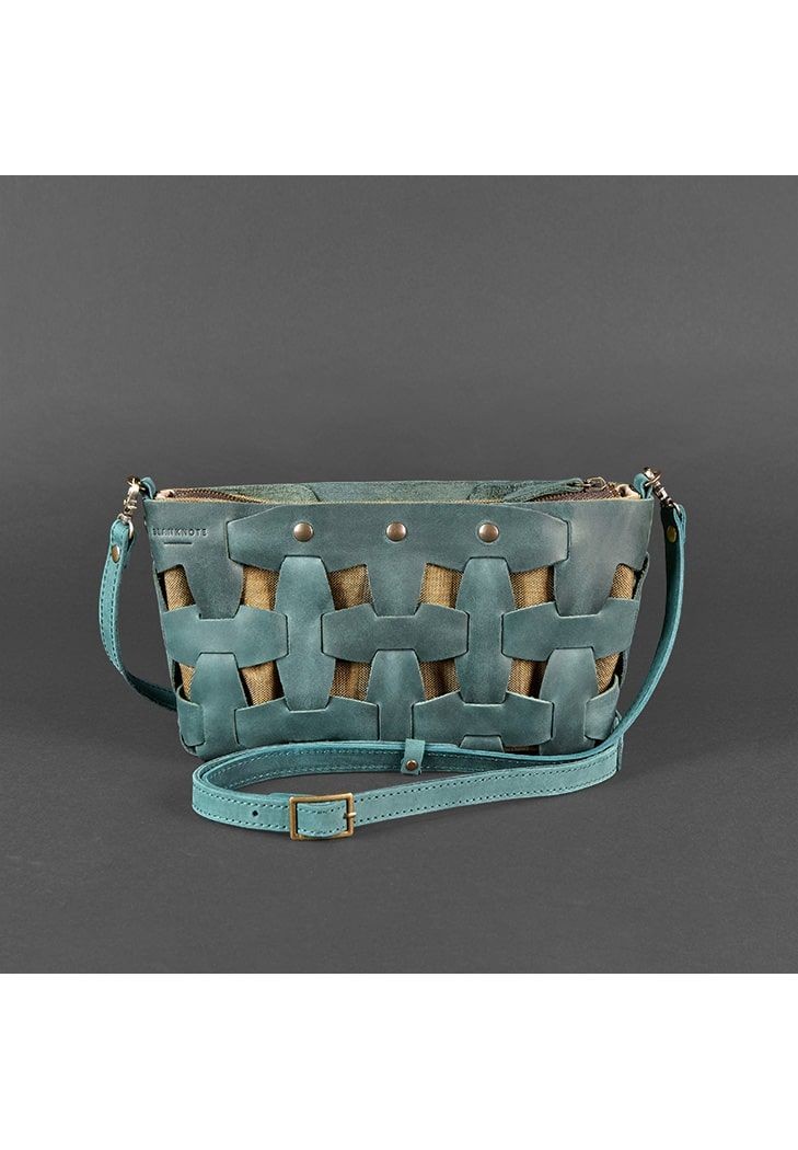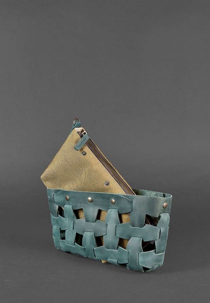 Кожаная плетеная женская сумка BlankNote Пазл S зеленая Crazy Horse BN-BAG-31-IZ