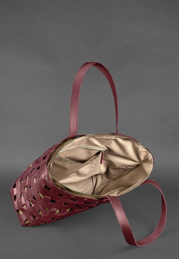 Кожаная женская плетеная сумка BlankNote Пазл Xl бордовая Krast BN-BAG-34-VIN