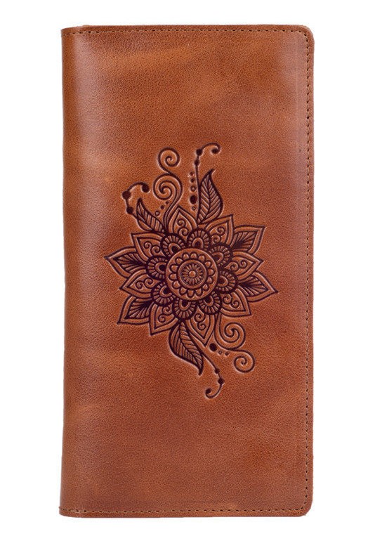 Эргономичный и стильный кошелек ручной работы из натуральной кожи на кнопках с художественным тиснением от HiArt , со всеми необходимыми отделами для купюр и мелочи. Будет отличным дополнением образа.