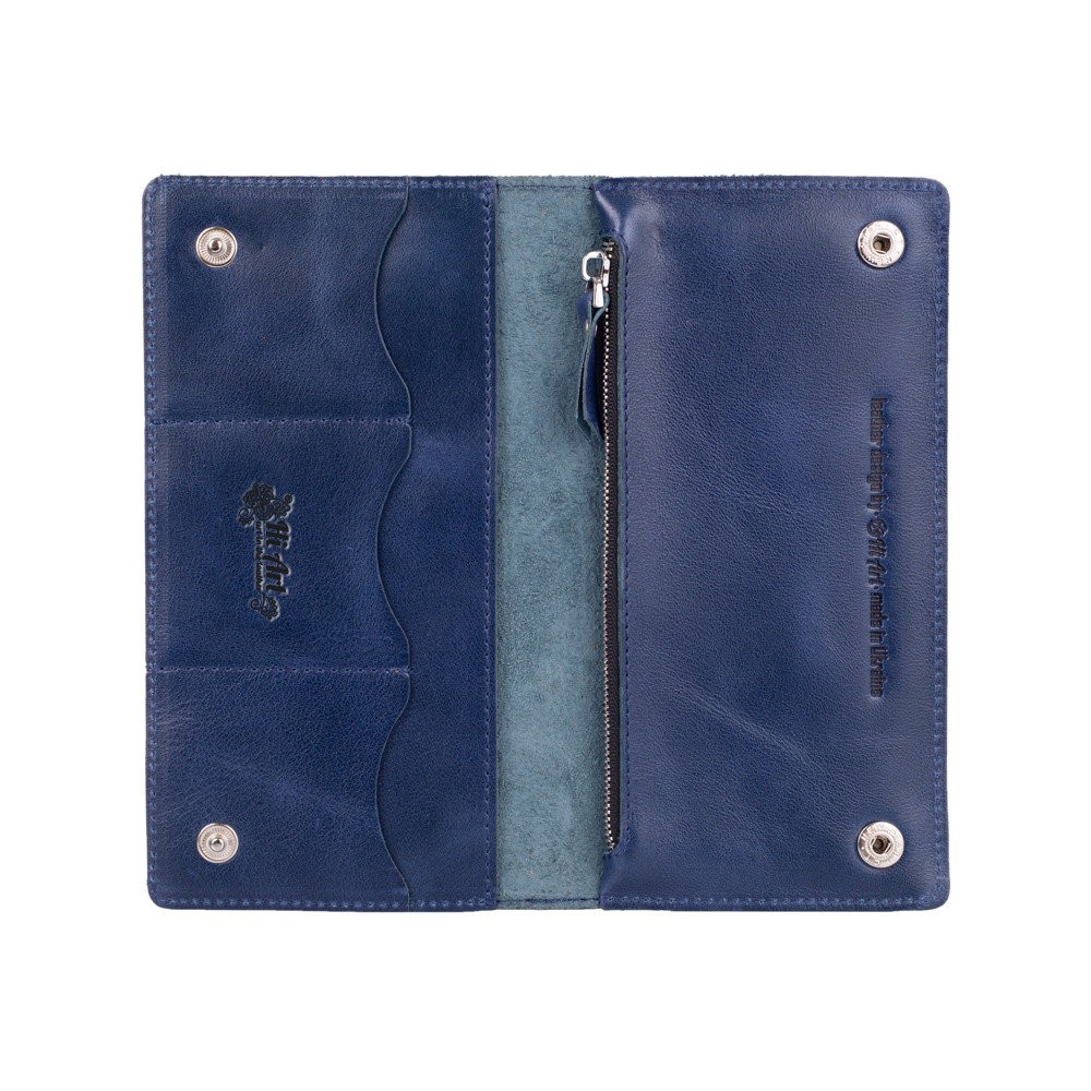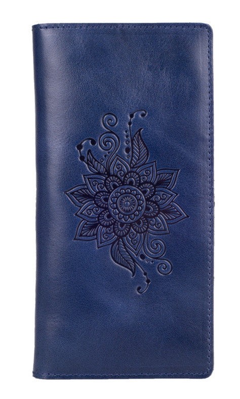Эргономичный и стильный кошелек ручной работы из натуральной кожи на кнопках с художественным тиснением от HiArt , со всеми необходимыми отделами для купюр и мелочи. Будет отличным дополнением образа.