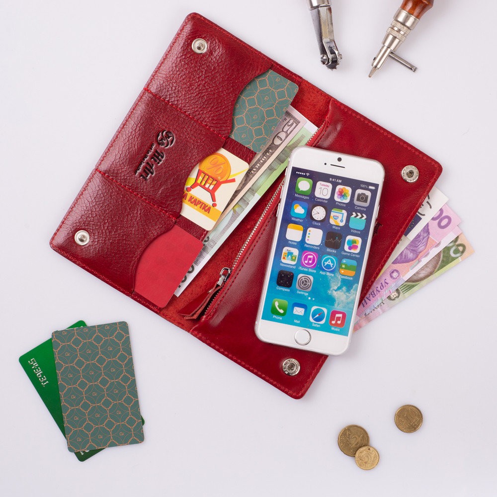 Эргономичный и стильный кошелек ручной работы из натуральной кожи на кнопках с художественным тиснением от HiArt , со всеми необходимыми отделами для купюр и мелочи. Будет отличным дополнением образа.