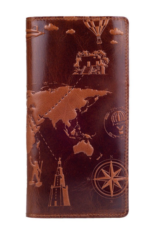 Кожаный бумажник Hi Art коричневый 7 wonders of the world WP-02 (127443)