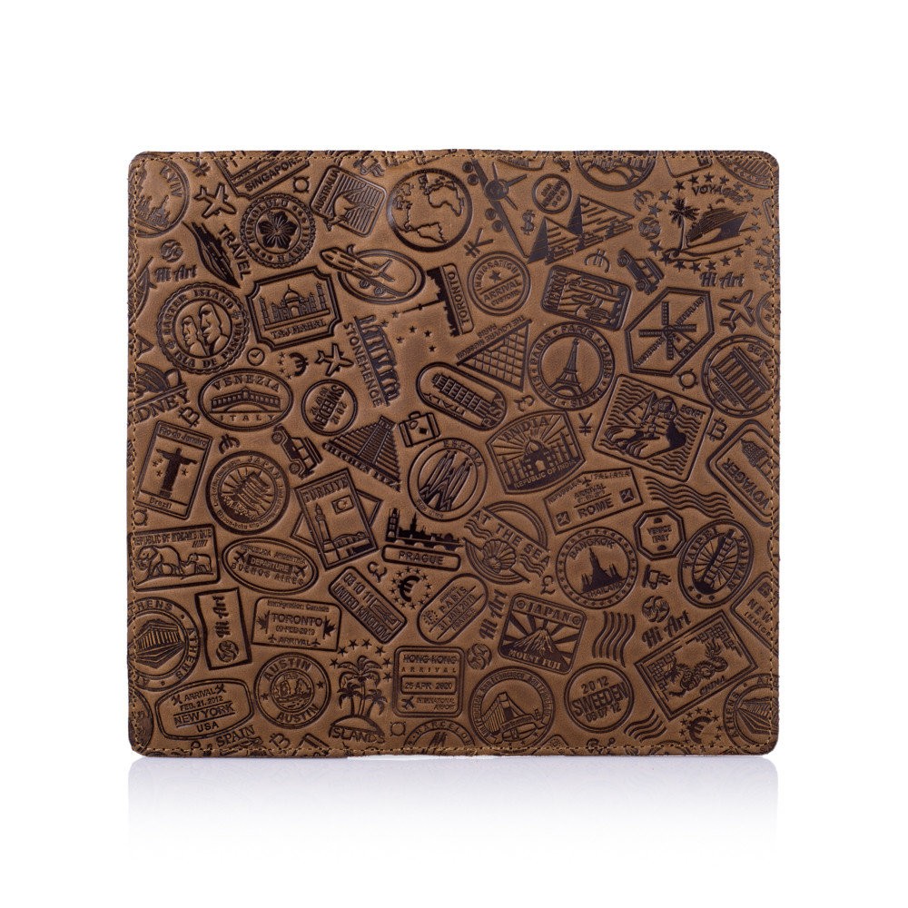 Кожаный бумажник Hi Art WP-05 Let's Go Travel коричневый