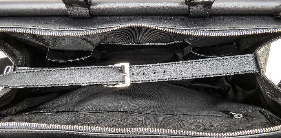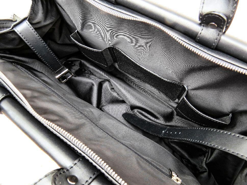 Количество отделов: одно вместительное отделение, 3 кожаных открытых кармана для портмоне, смартфона и прочих мелких предметов, еще и большой врезной карман с молнией. Также, внутри пришит кожаный ремешок-ограничитель, для сохранения формы изделия.