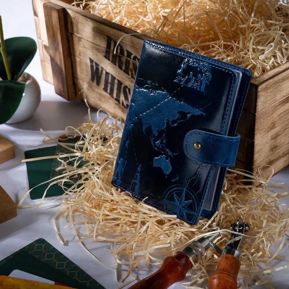 Кожаный картхолдер Hi Art «7 wonders of the world» CH-06 Crystal Blue