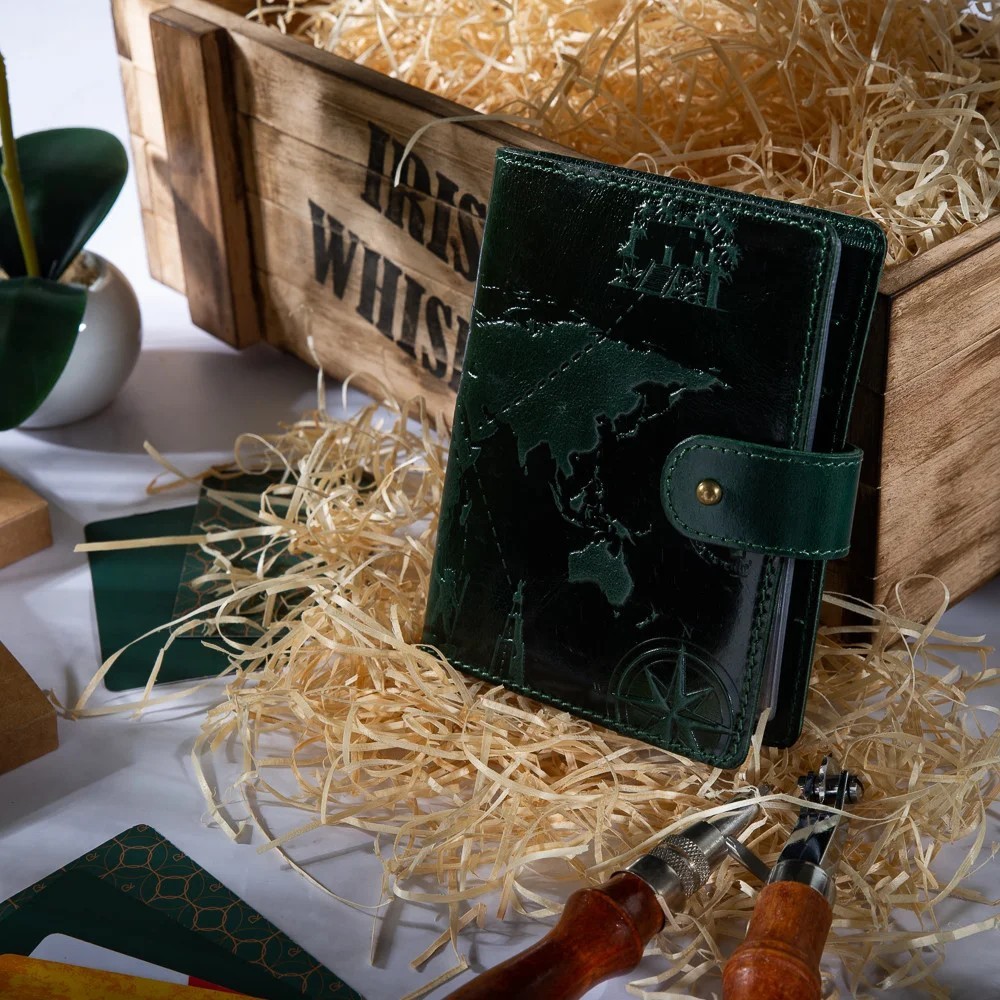Кожаный картхолдер Hi Art «7 wonders of the world» CH-06 Crystal Green