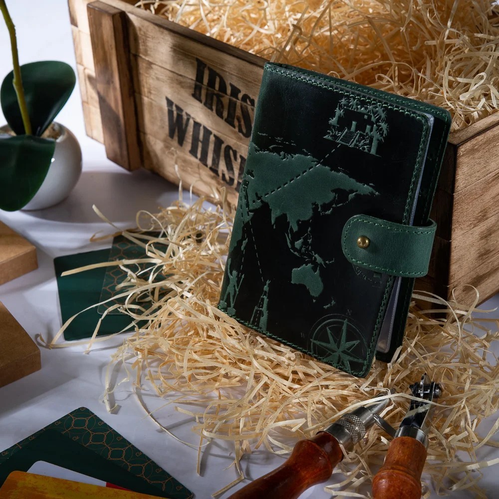Кожаный картхолдер Hi Art «7 wonders of the world» CH-06 Shabby Alga