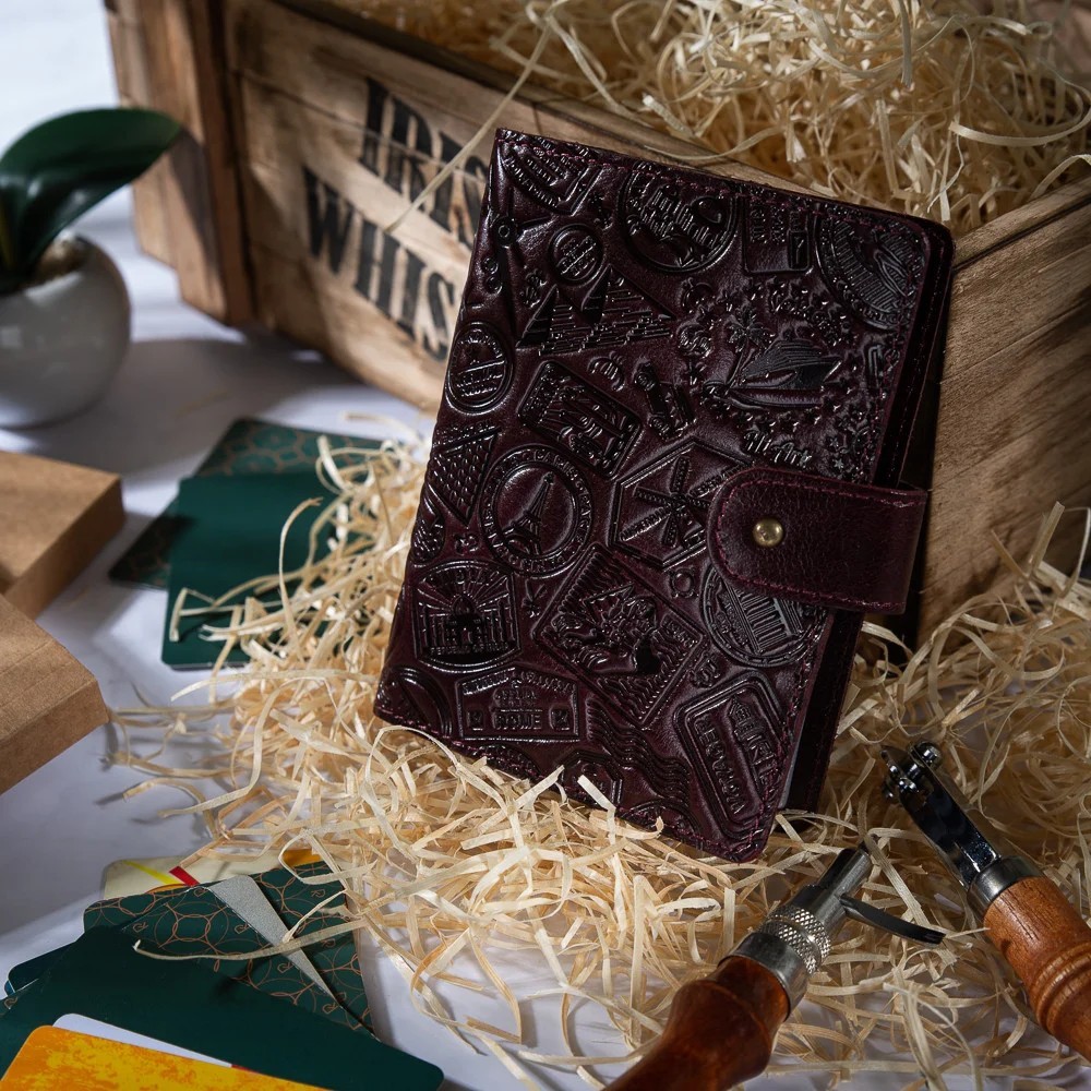 Кожаный картхолдер Hi Art «Let's Go Travel» CH-06 Crystal Sangria