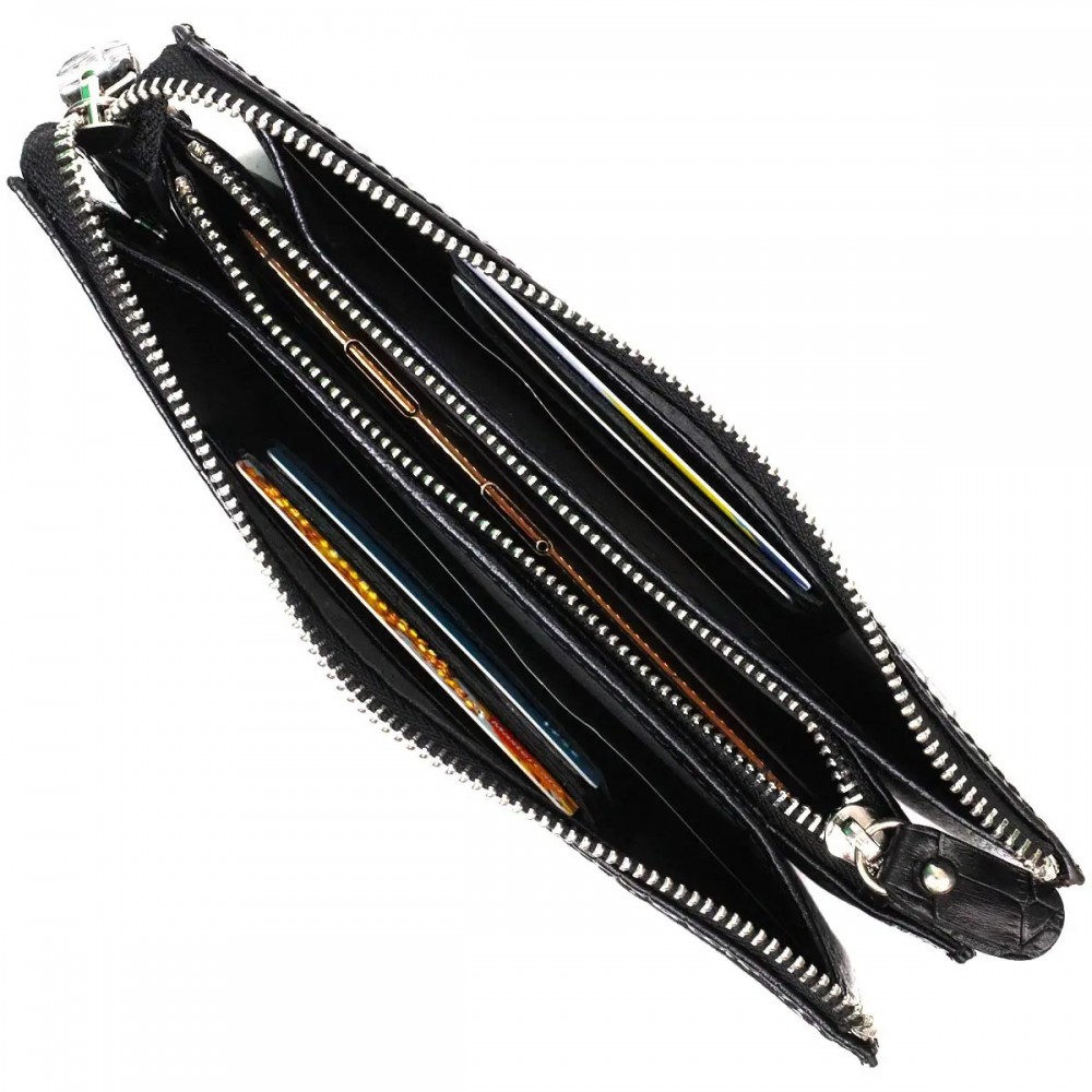 Количество основных отделений: 2 широких отделения для купюр; 2 прилегающих кармана; 6 ячеек для пластиковых карточек; карман-перегородка на молнии;
