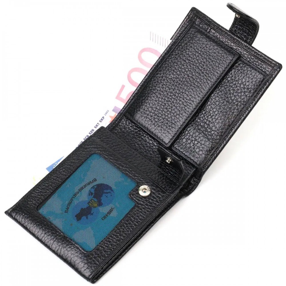 Количество основных отделений: 2 отделения для купюр; 2 кармана под сеточкой; 3 ячейки для карт; 2 прилегающих кармана; закрывается хлястиком на кнопку; карман для монет;