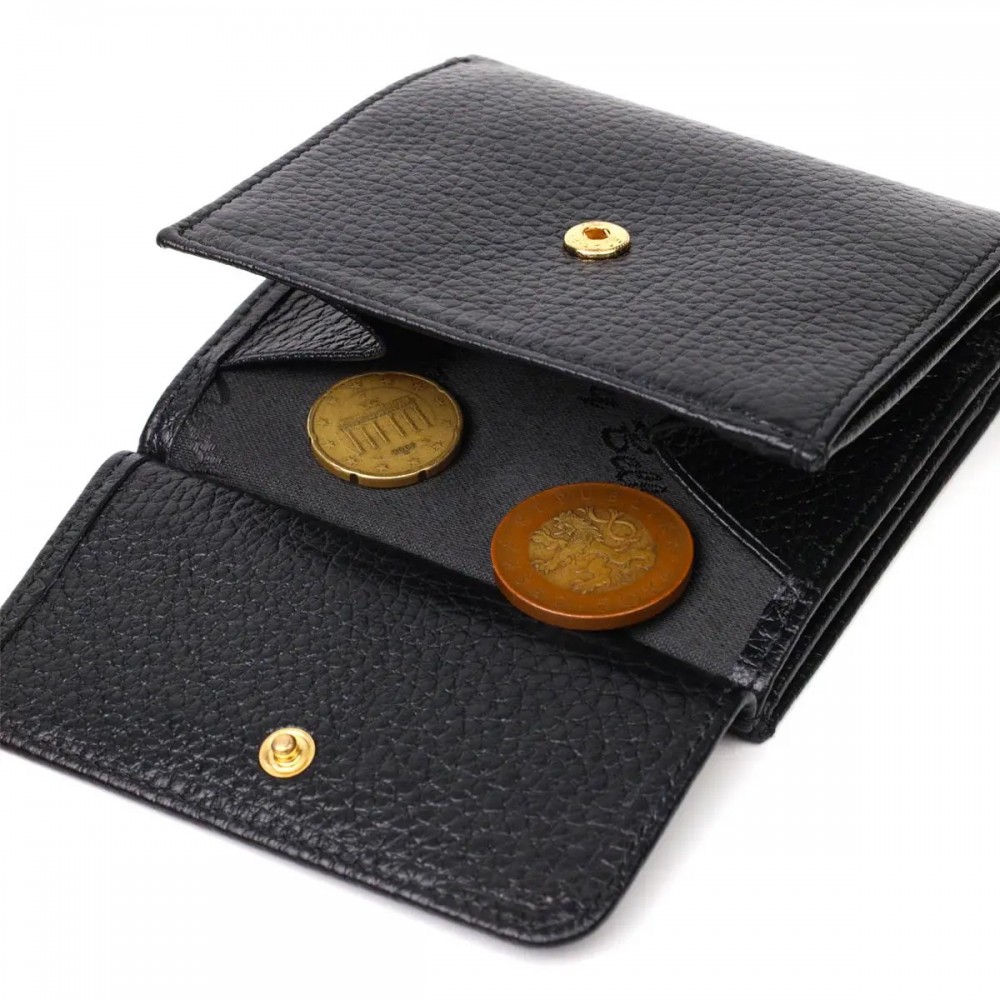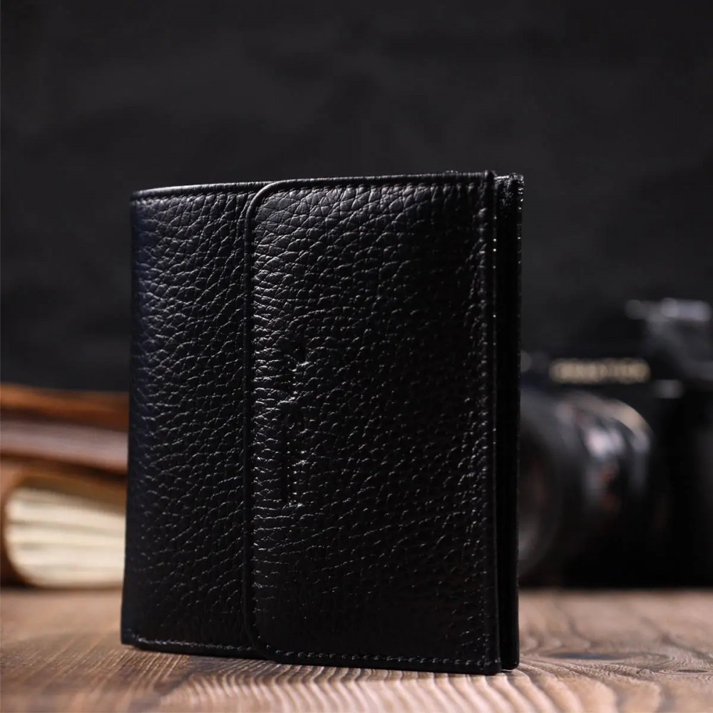 Количество основных отделений: 2 широких отделений для купюр; монетница под клапаном на кнопке снаружи; 3 ячейки для карт; 3 прилегающих кармана; карман под сеткой для документов;