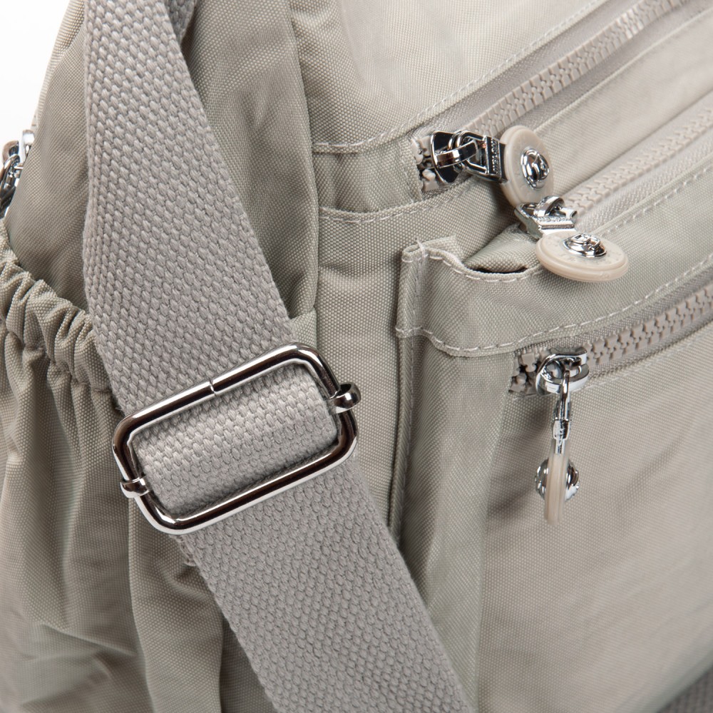 Количество отделов: Внутри есть карман-перегородка на молнии, боковой карман на молнии и открытый двойной карман. На фасаде расположены три больших кармана на молнии, а на обратной стороне находится один вместительный карман на молнии. На торцах сумочки есть небольшие карманы на резинке.