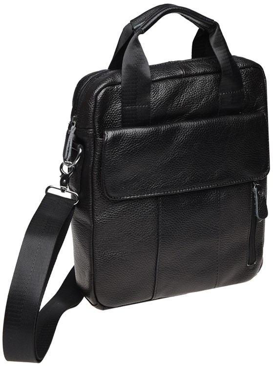 Мужская чёрная кожаная сумка Borsa Leather k18863-black