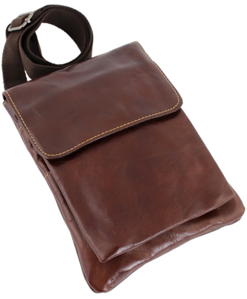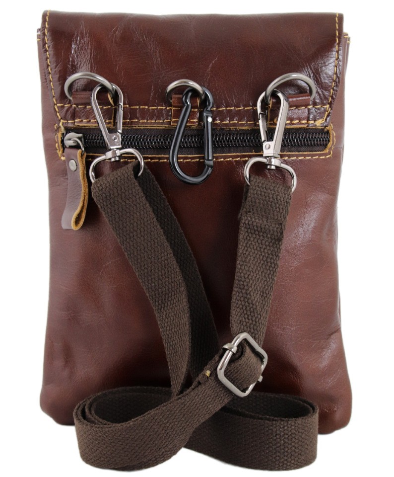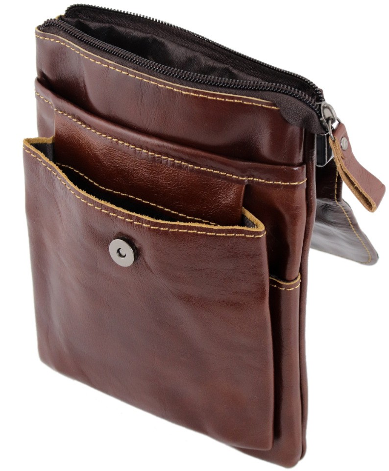 - Сумка-планшет из натуральной кожи коричневого цвета. Имеет 3 изолированных отделения: 1- на молнии, закрываются клапаном на кнопке-магните. Снизу находится скрытый кармашек на кнопке-магните; с тыльной стороны- карман на молнии. Регулируемый по длине ремень через плечо на карабинах.