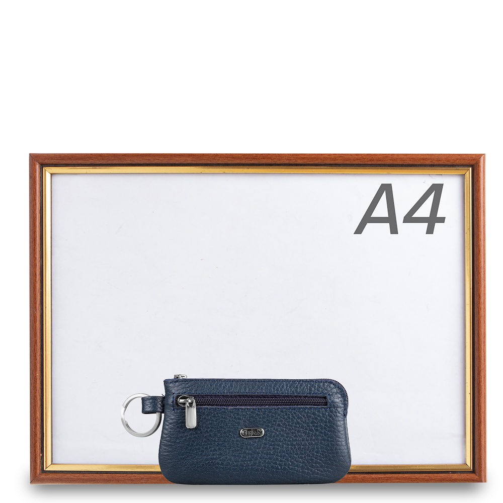 Количество отделов: одно основное отделение. Внутри расположено кольцо на цепочке для крепления ключей. Снаружи на лицевой стороне изделия есть прорезной карманчик на молнии.
