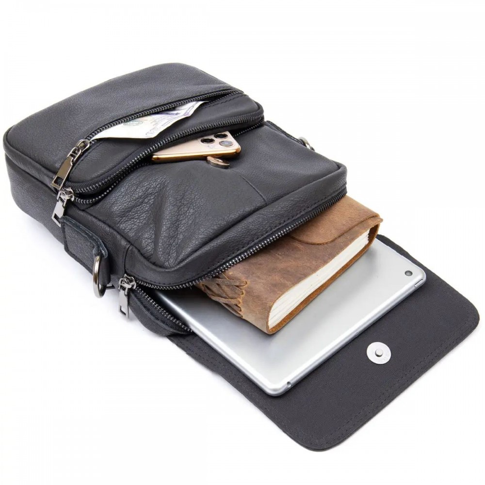 Количество отделов: основное отделение на молнии и под клапаном на магнитной кнопке; 2 накладных открытых кармана внутри; потайной карман на молнии; накладной карман на молнии и встроенный карман на молнии на лицевой стороне аксессуара; карман на молнии на тыльной стороне;