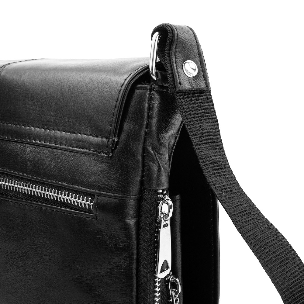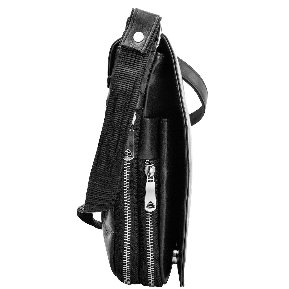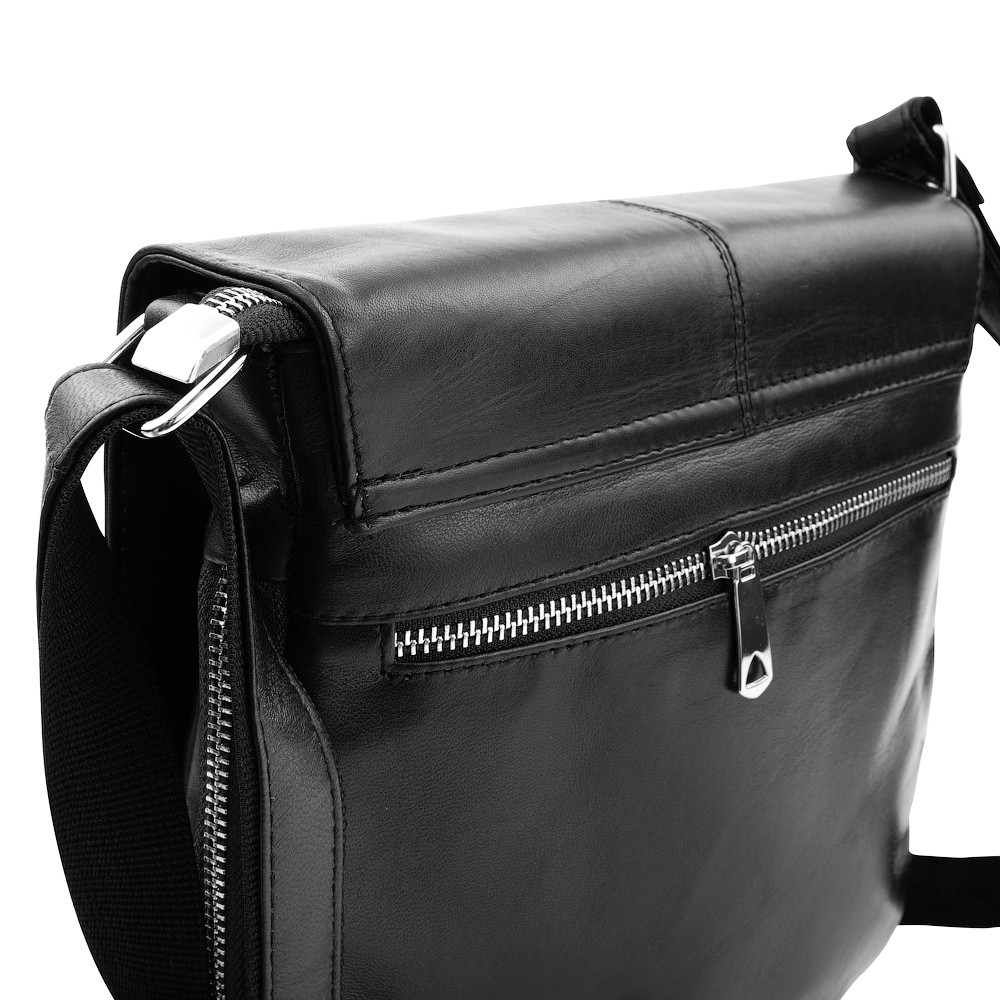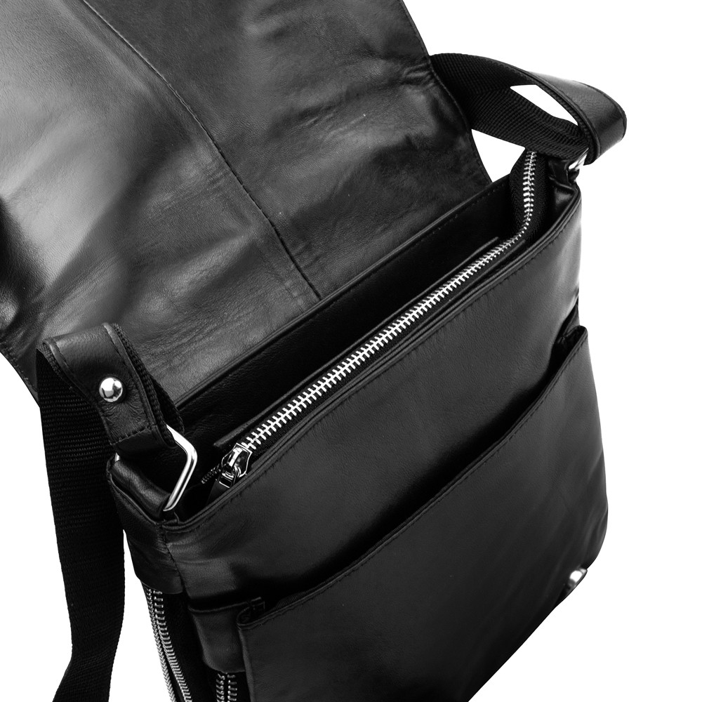 Лаконичная модель из натуральной кожи - идеально подходит для ежедневного использования. Она имеет качественную фурнитуру и крепкий плечевой ремень, который выполнен из прочной ткани и натуральной кожи. Благодаря такому сочетанию ремень будет устойчив к разрывам. Сумка имеет 2 молнии, которые проходят по дну и боковым стенкам сумки, и это является ещё одним плюсом этой модели.