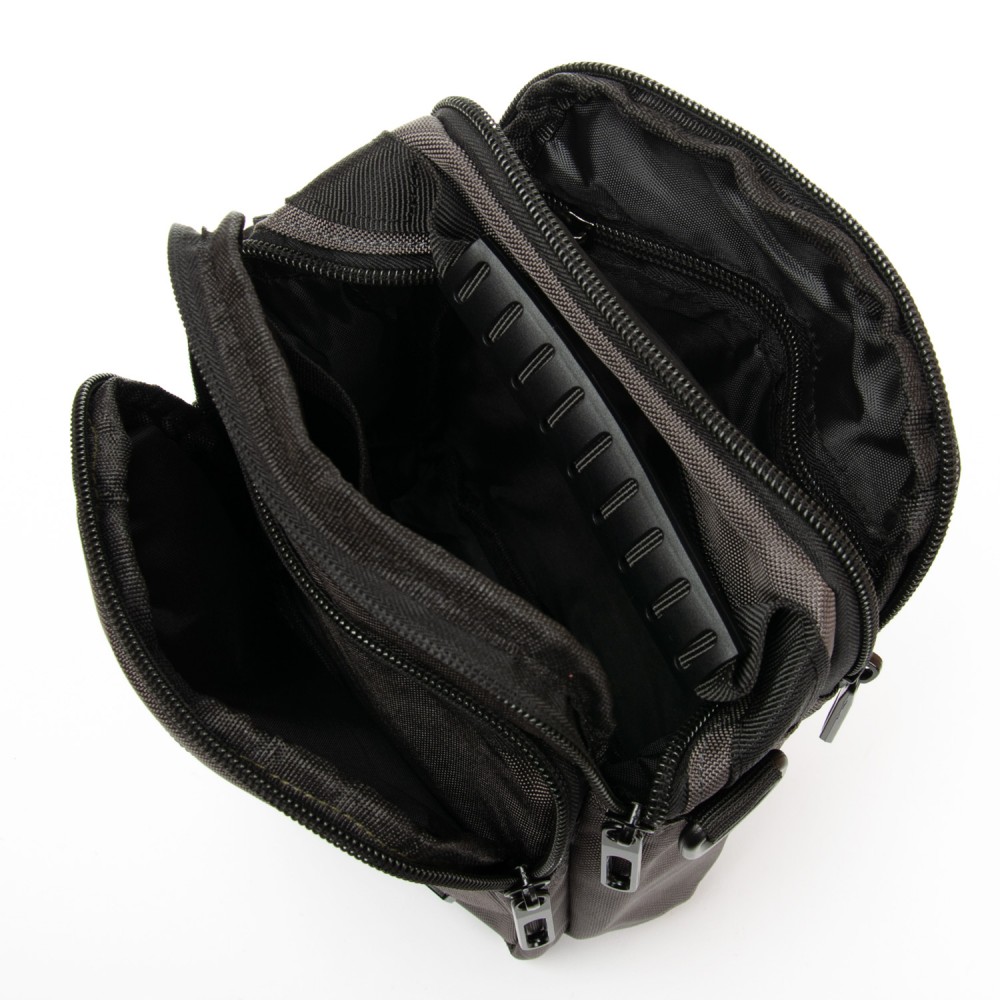Количество отделов: Два отделения, закрываются на молнию. Внутри отделений расположен карман на молнии и открытый карман. На фасаде находятся два вместительных кармана на молнии. На обратной стороне есть крепление на пояс.