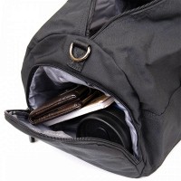 Количество отделений: основное отделение на молнии; 2 открытых накладных кармана и кармашек для ручки; потайной карман на молнии; боковой карман для обуви на молнии; боковой карман на двух молниях; съемный ремешок на плечо; карман на кнопке открытого типа сбоку;