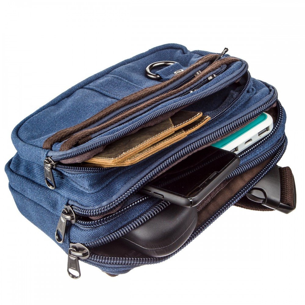 Мужская текстильная синяя сумка на пояс Vintage 20158