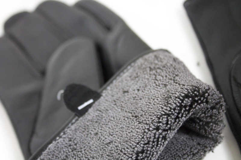 Украшение- контрастные три серые строчки, на лицевой стороне перчатки