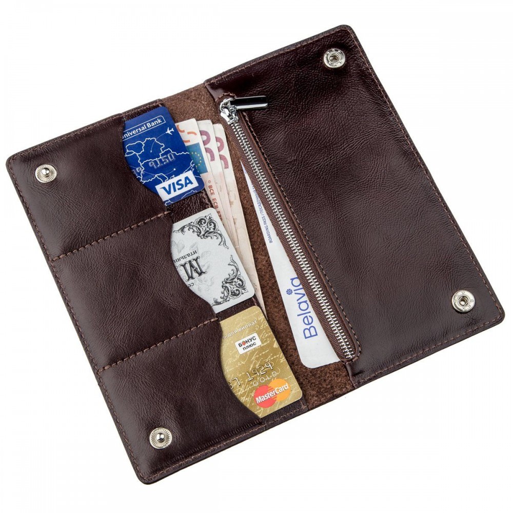 Количество отделов: 2 отделения для купюр; 3 слота для карточек; карман на молнии