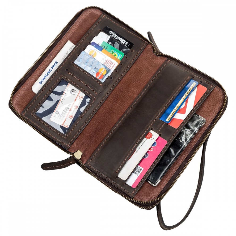 Количество отделов: 2 больших автономных отделения. В первом отделении есть 2 отсека для купюр и 2 ячейки для кредитных карточек; во втором отделении 11 ячеек для кредитных карточек и 2 накладных кармана для мобильного телефона