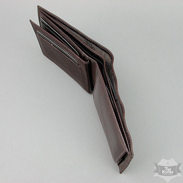Количество отделов: два основных отделения для купюр. Есть отделения для визиток. Есть карман-монетница на кнопке
