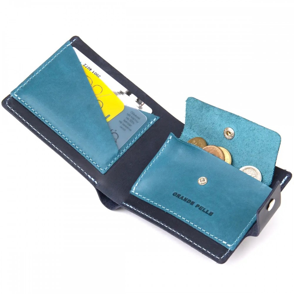 Мужской кожаный кошелек GRANDE PELLE 11461 Темно-синий