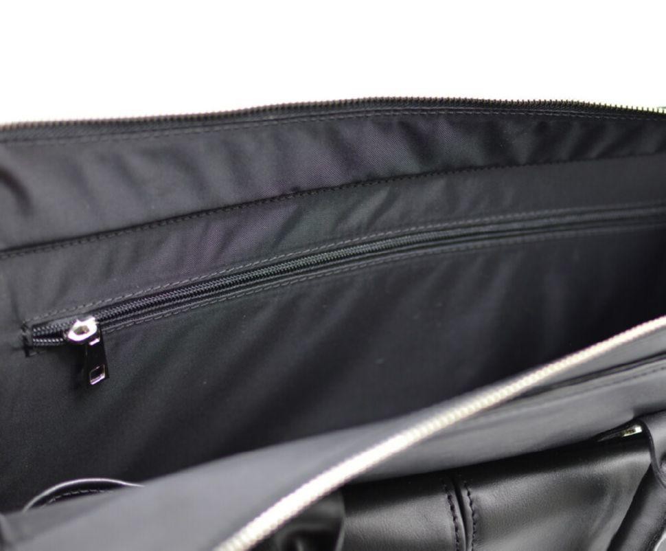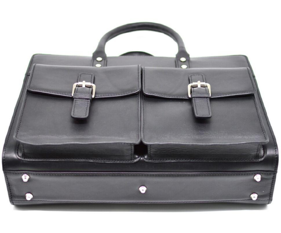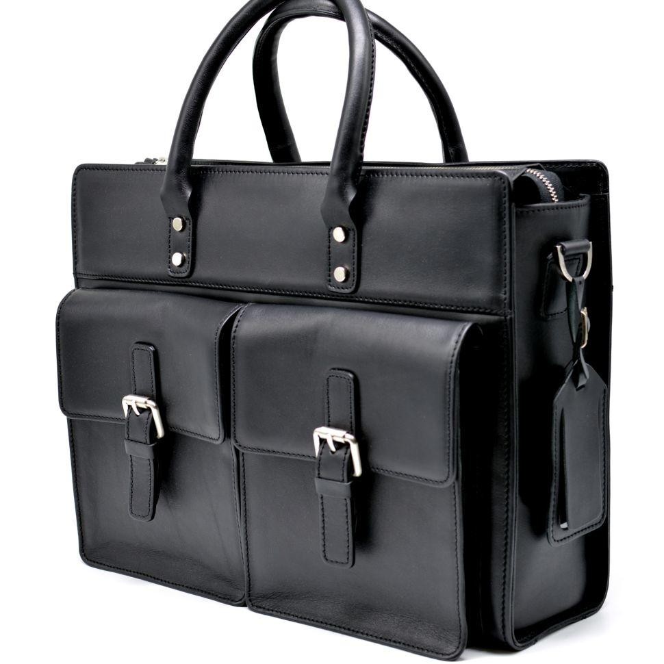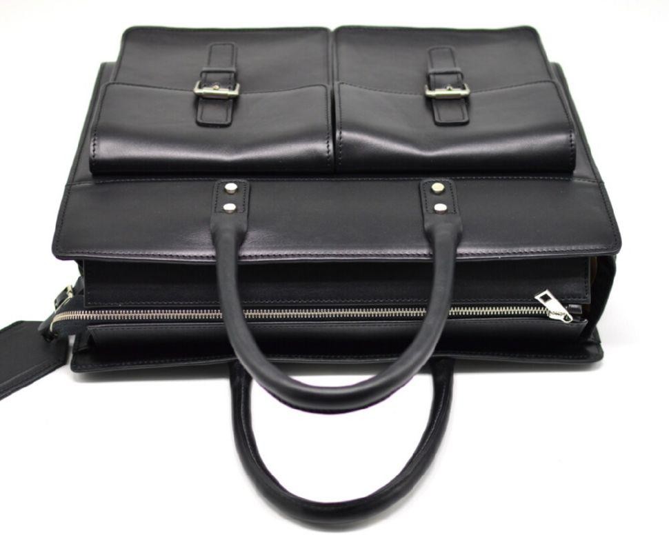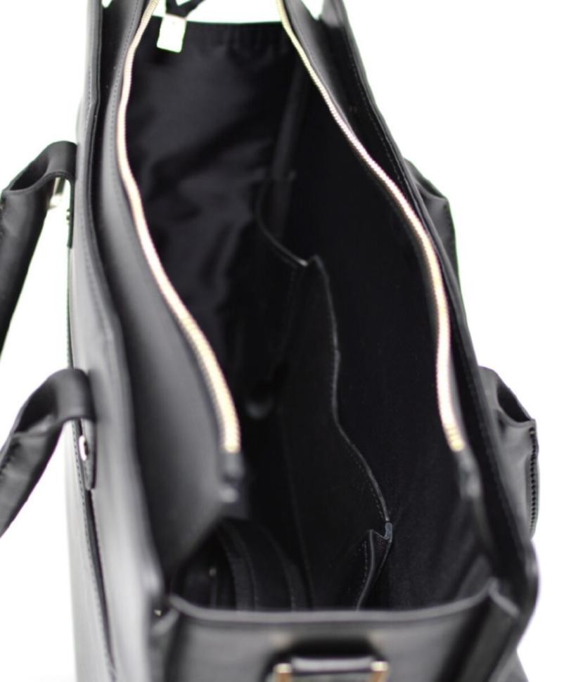 Имеет 2 кожаные ручки и съемный регулируемый плечевой ремень