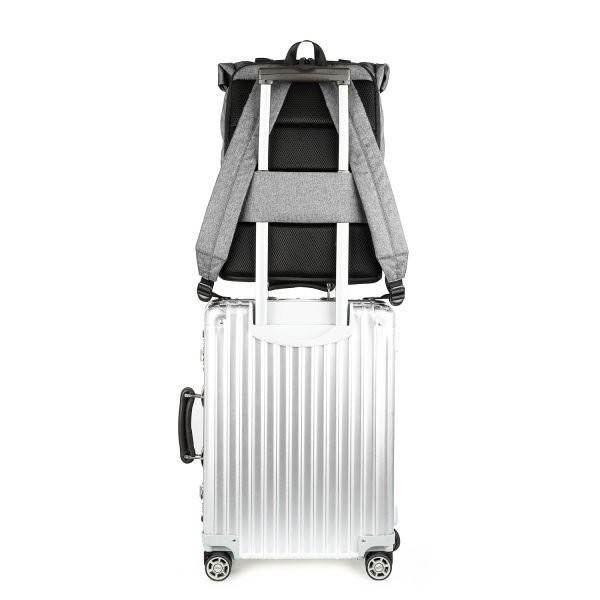 Задний багажный ремешок позволяет закрепить рюкзак на ручке чемодана.