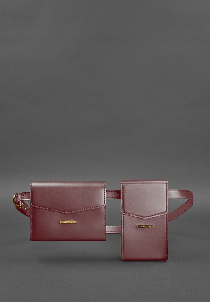Набор женских кожаных сумок BlankNote Mini поясная/ кроссбоди бордовые - BN-BAG-38-VIN