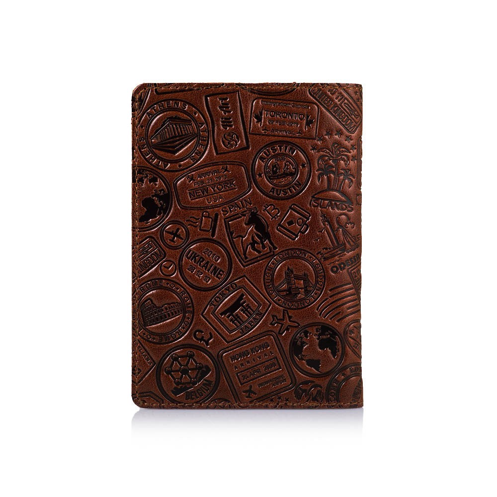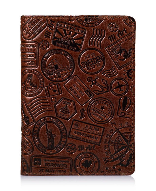 Обложка-органайзер для документов из кожи HiArt AD-01 Let's Go Travel коньячный