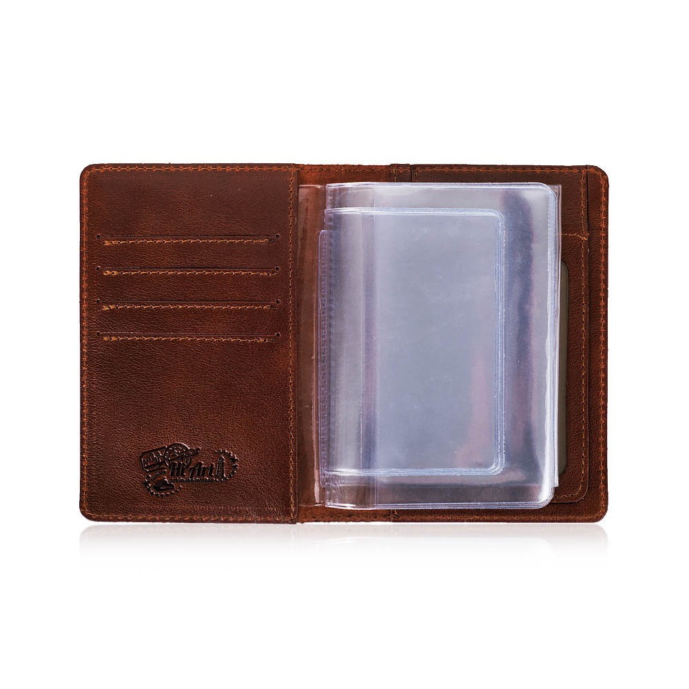 Отделения: 1 отделение для паспорта 1 карман с пластиковым окном для водительских прав старого образца 1 откидной карман с пластиковым окном для биометрического паспорта / свидетельства о регистрации / страховки 4 секции для карт. Каждая вмещает до 5 карт Укомплектованна дополнительным ПВХ вкладышей для Доверенности и прочих документов.