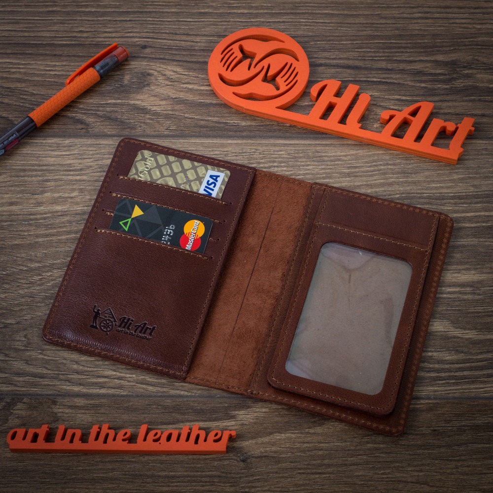 Отделения: 1 отделение для паспорта 1 карман с пластиковым окном для водительских прав старого образца 1 откидной карман с пластиковым окном для биометрического паспорта / свидетельства о регистрации / страховки 4 секции для карт. Каждая вмещает до 5 карт