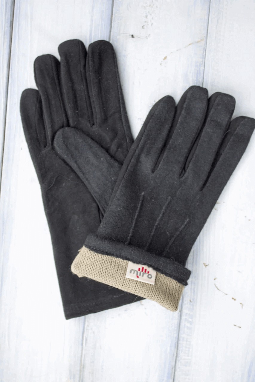 Перчатки женские чёрные комбинированные замша+кашемир 516-2s1 S